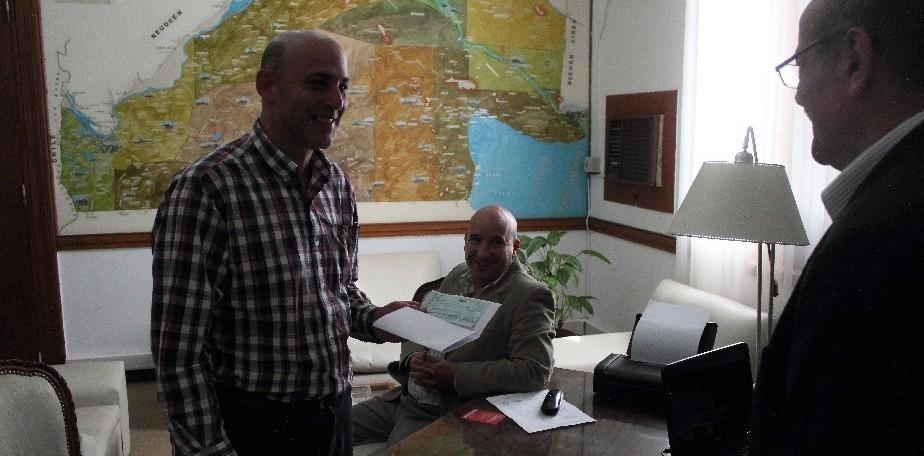 El ministro de Gobierno de Río Negro, Luis Di Giácomo, entregó hoy al secretario de Gobierno de la Municipalidad de Viedma, Pedro Sánchez, un aporte de 217 mil pesos.